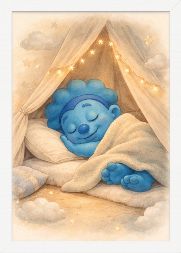 Motivet föreställer Melleloos som sover gott i en mjuk och ombonad koja, omgiven av varma ljus och drömska detaljer, och är skapad för att ge en känsla av ro, närhet och trygghet vid läggdags.